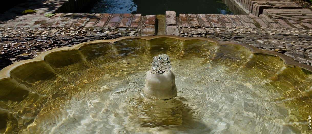 SEMANA 10 (LA ALHAMBRA): Un detalle de sus jardines que nos refresca sólo con la mirada, una pena que la fotografía no muestre el sonido y sobre todo la sensación de frescor a pesar de los 35 grados a la sombra.